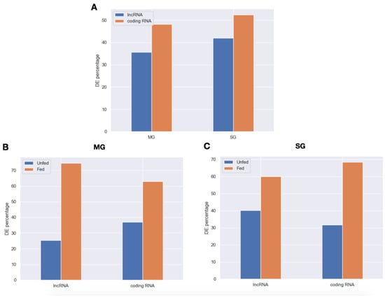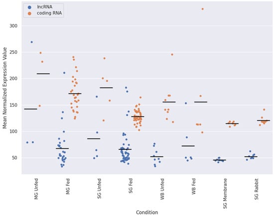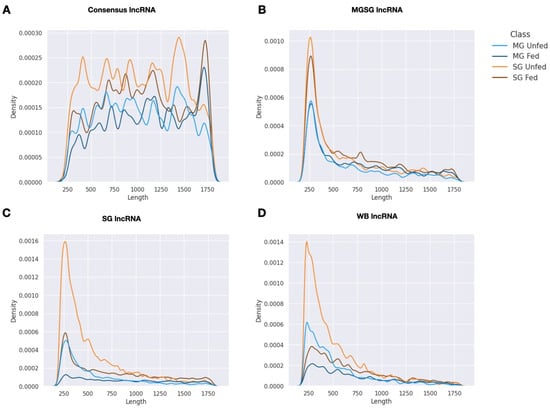 2.2. Expression Patterns of lncRNAs in the Midgut and Salivary Glands under Different Feeding Treatments