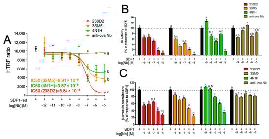 - Jähnichen, S.; Blanchetot, C.; Maussang, D.; Gonzalez-Pajuelo, M.; Chow, K.Y.; Bosch, L.; De Vrieze, S.; Serruys, B.; Ulrichts, H.; Vandevelde, W.; et al. CXCR4 Nanobodies (VHH-Based Single Variable Domains) Potently Inhibit Chemotaxis and HIV-1 Replication and Mobilize Stem Cells. Proc. Natl. Acad. Sci. USA 2010, 107, 20565–20570. [Google Scholar] [CrossRef]