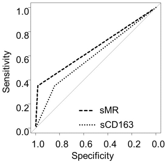 | sMR + sCD163 | 0.254 | 0.60 | 0.825 | 0.545 | 0.855 | 0.739 (0.609–0.861) |
