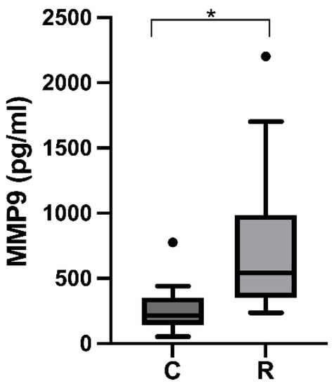 Chicago/Turabian StyleFernández, Javier, Constanza Jiménez, Dafna Benadof, Paulina Morales, Jessica Astorga, Felipe Cáceres, Marcela Hernández, Alejandra Fernández, and Fernando Valenzuela. 2022. "MMP-9 Levels in the Gingival Crevicular Fluid of Chilean Rosacea Patients" International Journal of Molecular Sciences 23, no. 17: 9858. https://doi.org/10.3390/ijms23179858