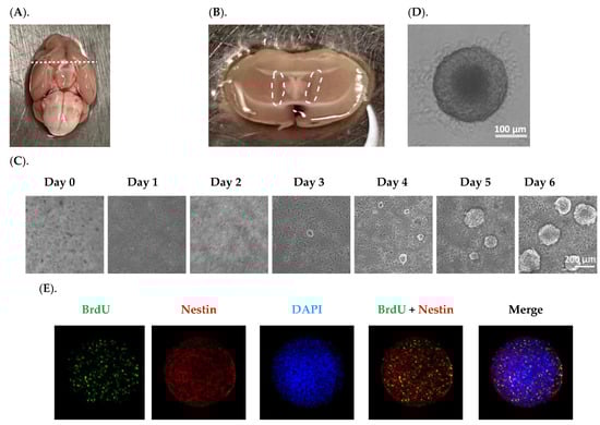 - Walker, T.L.; Kempermann, G. One mouse, two cultures: Isolation and culture of adult neural stem cells from the two neurogenic zones of individual mice. J. Vis. Exp. 2014, 84, e51225. [Google Scholar] [CrossRef]