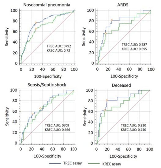 2.2. Experimental Study: Host Immune Response Measured Using TRECs/KRECs in Patients with Community-Acquired and Nosocomial Pneumonia