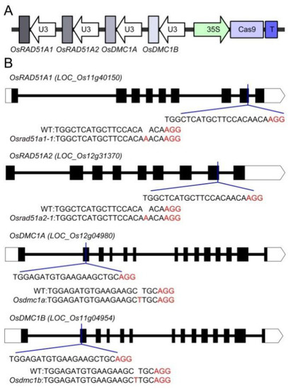 2.1. Generation of Osrad51 and Osrad51 Osdmc1 Mutants by CRISPR/Cas9 Genome Editing