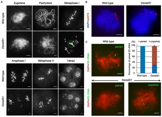2.3. The Osrad51 Mutant Shows Defects in Homologous Pairing and Synapsis