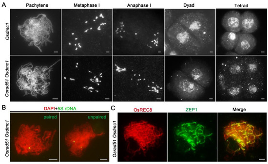 2.7. Chromosomal Behavior in the Osrad51 Osdmc1 Mutant Is Similar to That in the Osrad51 Mutant