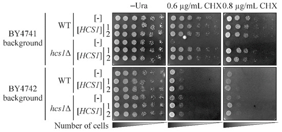 2.2. The Deletion of HCS1 Leads to Hypersensitivity to Cycloheximide