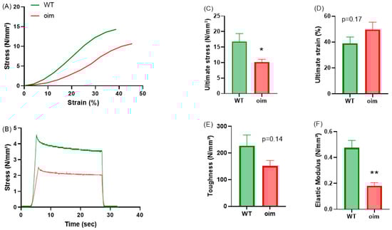 2.5. Tendon Tissue Material Properties Are Altered in Oim Mice