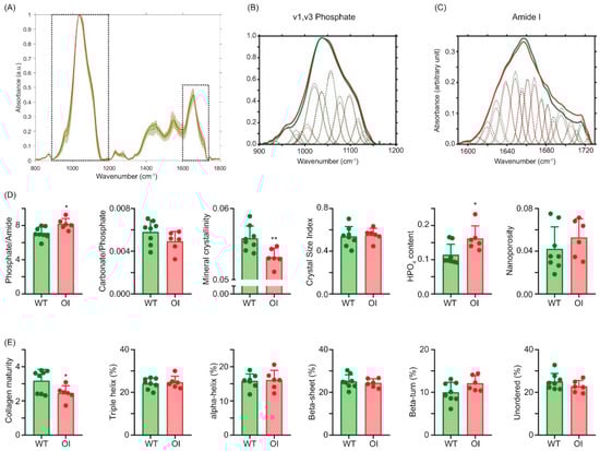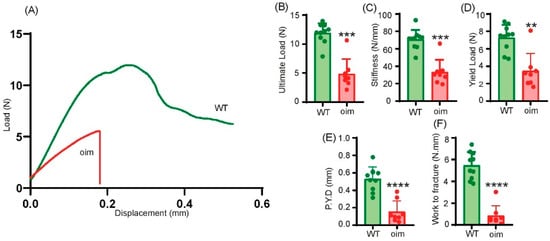 2.6. Bone Tissue Material Properties Are Altered in Oim Mice