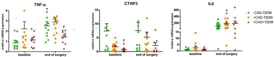Matloch Z, Mraz M, Kasperova BJ, Kratochvilova H, Svoboda P, Pleyerova I, Reznickova K, Norman S, Hlavacek D, Mahrik J, et al. Decreased Epicardial CTRP3 mRNA Levels in Patients with Type 2 Diabetes Mellitus and Coronary Artery Disease Undergoing Elective Cardiac Surgery: A Possible Association with Coronary Atherosclerosis. International Journal of Molecular Sciences. 2022; 23(17):9988. https://doi.org/10.3390/ijms23179988