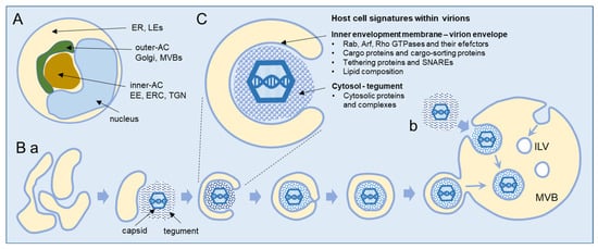 - Karleuša, L.; Lučin, H.M.; Zagorac, G.B.; Lučin, P. Cytoplasmic Virion Assembly Compartment of Betaherpesviruses. Period. Biol. 2020, 121–122, 97–106. [Google Scholar] [CrossRef]