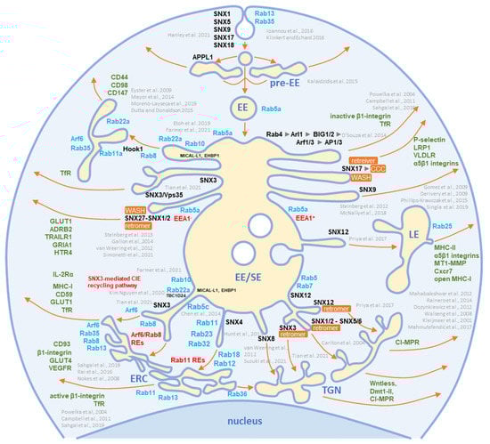 - Cullen, P.J.; Steinberg, F. To Degrade or Not to Degrade: Mechanisms and Significance of Endocytic Recycling. Nat. Rev. Mol. Cell Biol. 2018, 19, 679–696. [Google Scholar] [CrossRef]