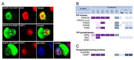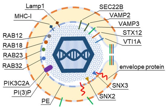 - Liu, S.T.H.; Sharon-Friling, R.; Ivanova, P.; Milne, S.B.; Myers, D.S.; Rabinowitz, J.D.; Brown, H.A.; Shenk, T. Synaptic Vesicle-like Lipidome of Human Cytomegalovirus Virions Reveals a Role for SNARE Machinery in Virion Egress. Proc. Natl. Acad. Sci. USA 2011, 108, 12869–12874. [Google Scholar] [CrossRef]
