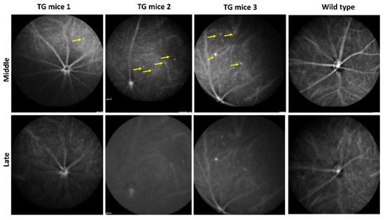 - Kumar, S.; Berriochoa, Z.; Ambati, B.K.; Fu, Y. Angiographic Features of Transgenic Mice With Increased Expression of Human Serine Protease HTRA1 in Retinal Pigment Epithelium. Investig. Opthalmol. Vis. Sci. 2014, 55, 3842–3850. [Google Scholar] [CrossRef] [Green Version]