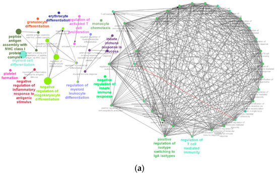 2.6. Immune System Network and GO-Terms Pathway Enrichment Analysis