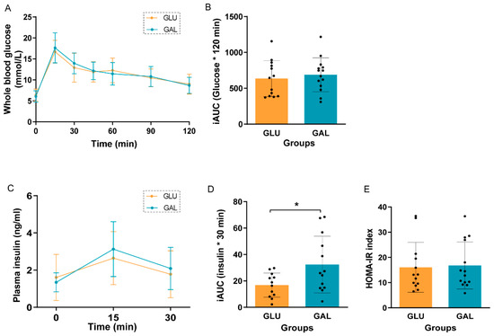- Stahel, P.; Kim, J.J.; Xiao, C.; Cant, J.P. Of the milk sugars, galactose, but not prebiotic galacto-oligosaccharide, improves insulin sensitivity in male Sprague-Dawley rats. PLoS ONE 2017, 12, e0172260. [Google Scholar] [CrossRef]