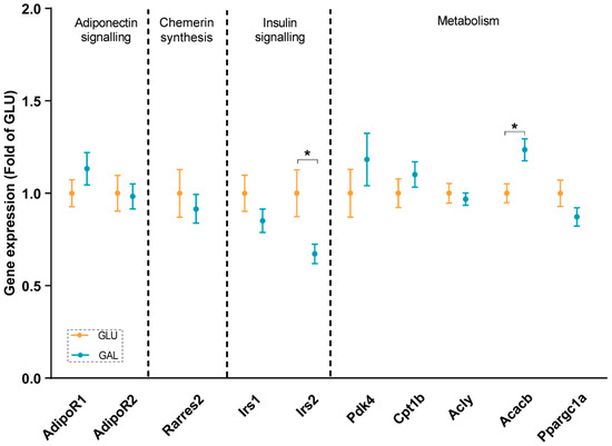 Sun, P.; Bouwman, L.M.S.; de Deugd, J.-l.; van der Stelt, I.; Oosting, A.; Keijer, J.; van Schothorst, E.M. Galactose in the Post-Weaning Diet Programs Improved Circulating Adiponectin Concentrations and Skeletal Muscle Insulin Signaling. Int. J. Mol. Sci. 2022, 23, 10207. https://doi.org/10.3390/ijms231810207