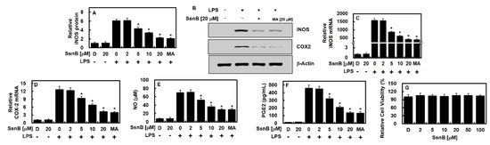 2.1. Inhibitory Effect of SsnB on the Expressions of iNOS and COX-2 by LPS