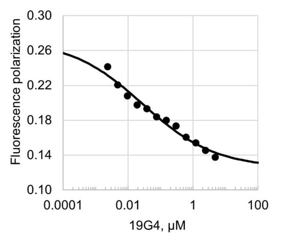 As can be seen, the fluorescence polarization value decreased with increasing 19G4 concentration, which suggests that the G4-containing oligonucleotide displaced the cognate Dnmt3a-CD substrate from the protein•DNA complex. The calculated half-maximal effective concentration (EC50) of 19G4 was 26 ± 1 nM.
