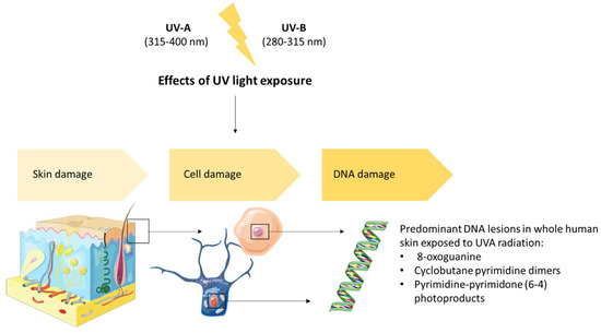 - Cadet, J.; Douki, T.; Ravanat, J.-L. Oxidatively Generated Damage to Cellular DNA by UVB and UVA Radiation. Photochem. Photobiol. 2015, 91, 140–155. [Google Scholar] [CrossRef]