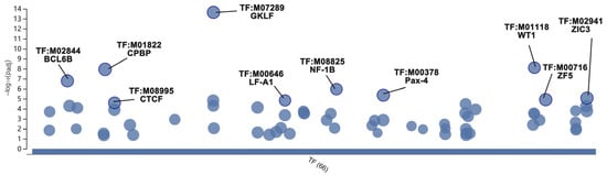 - Matys, V.; Kel-Margoulis, O.V.; Fricke, E.; Liebich, I.; Land, S.; Barre-Dirrie, A.; Reuter, I.; Chekmenev, D.; Krull, M.; Hornischer, K.; et al. TRANSFAC and its module TRANSCompel: Transcriptional gene regulation in eukaryotes. Nucleic Acids Res. 2006, 34, D108–D110. [Google Scholar] [CrossRef] [Green Version]