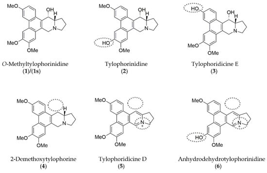 - Huang, X.; Gao, S.; Fan, L.; Yu, S.; Liang, X. Cytotoxic Alkaloids from the Roots of Tylophora atrofolliculata. Planta Med. 2004, 70, 441–445. [Google Scholar] [CrossRef]