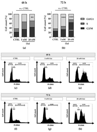 2.8. Compound (1s) Blocks Cell Proliferation in the G0/G1 Phase and Delays Cell Cycle Progression