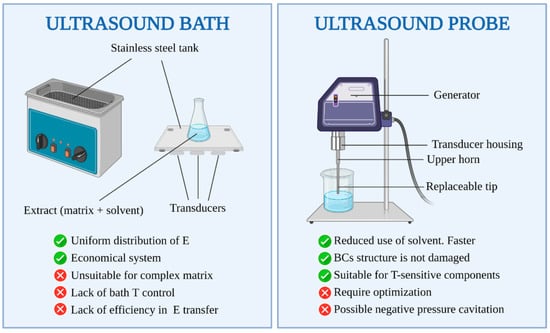 Schematics of ultrasound-assisted extraction setups. Reproduced from [155] with permission (open access, Attribution 4.0 International (CC BY 4.0)).