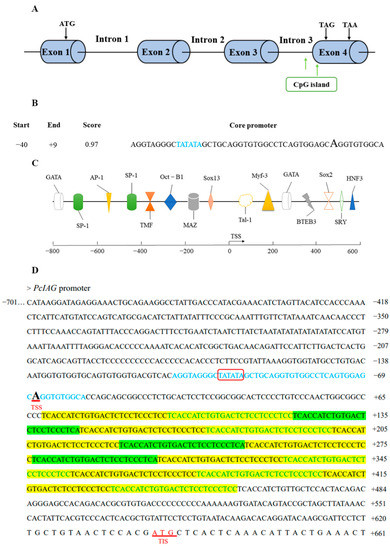 2.2. Bioinformatics Analysis of PcIAG Promoter Sequence