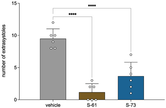 2.3. S-61 and S-73 Showed Therapeutic Antiarrhythmic Activity in Adrenaline-Induced Arrhythmia Model
