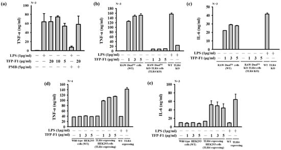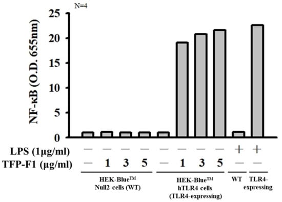 2.4. TFP-F1 Enhances the Production of Pro-Inflammatory Cytokines through Interaction with TLR4
