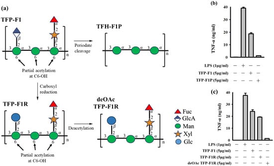 2.2. Monosaccharide Composition and Linkage Analysis of TFP-F1 and Its Derivatives