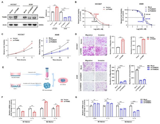 2.6. TIAM2 Contributed to Osimertinib Resistance, Cell Motility, and M2-like TAM Polarization in LUAD