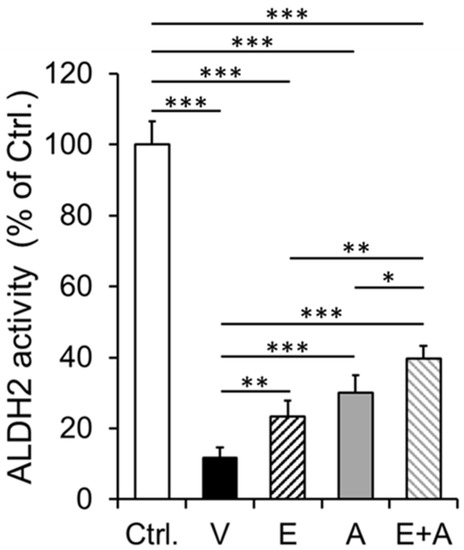2.5. Effects of EMP, Alda-1 and EMP + Alda-1 on ALDH2 Activity