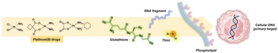 - Mezencev, R. Interactions of cisplatin with non-DNA targets and their influence on anticancer activity and drug toxicity: The complex world of the platinum complex. Curr. Cancer Drug Targets 2015, 14, 794–816. [Google Scholar] [CrossRef] [PubMed]