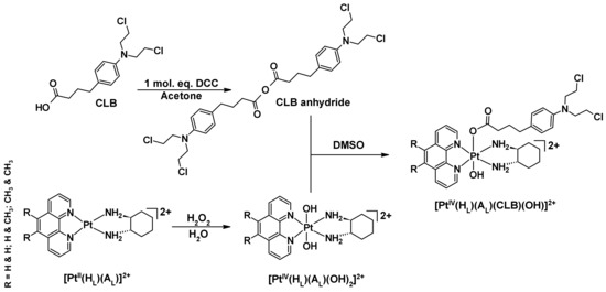 - Pathak, R.K.; Wen, R.; Kolishetti, N.; Dhar, S. A prodrug of two approved drugs, cisplatin and chlorambucil, for chemo war against cancer. Mol. Cancer Ther. 2017, 16, 625–636. [Google Scholar] [CrossRef] [PubMed]