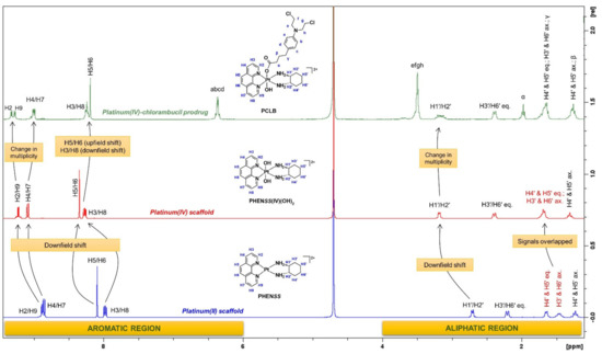 2.1.1. H-NMR and 1H-195Pt-HMQC Spectral Assignment