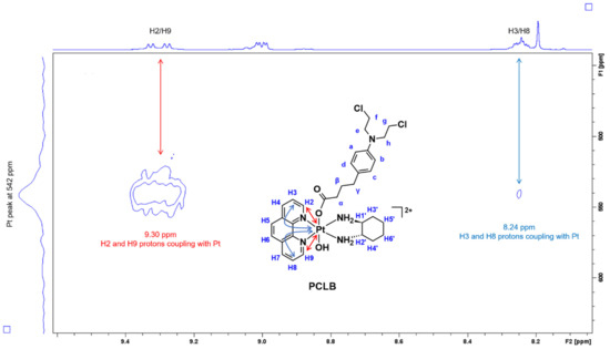 | 1H/195Pt | 9.30, 8.24/542 ppm | 9.26/544 ppm | 9.25, 9.22, 8.23/532 ppm |