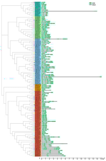 4.3. Phylogenetic Classification, Gene Structures, and Motif Analysis