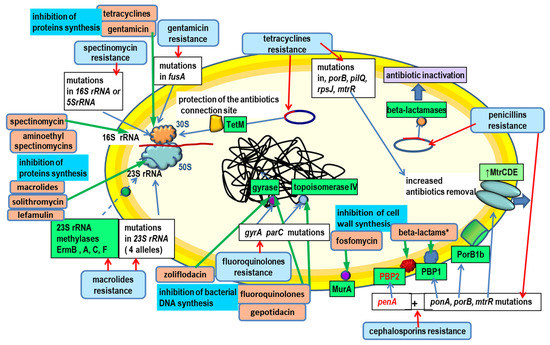 68. Ohneck, E.A.; Zalucki, Y.M.; Johnson, P.J.T.; Dhulipala, V.; Golparian, D.; Unemo, M.; Jerse, A.E.; Shafer, W.M. A Novel Mechanism of High-Level, Broad-Spectrum Antibiotic Resistance Caused by a Single Base Pair Change in Neisseria gonorrhoeae. mBio 2011, 2, e00187-11. [Google Scholar] [CrossRef]