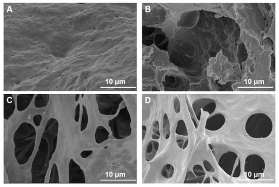 SEM images of CLIT-La ((A) surface; (B) cross section) and CLIT ((C) surface; (D) cross section).