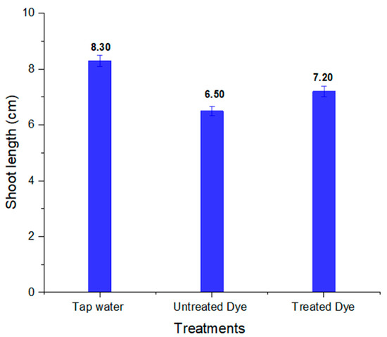 Shoot length of Vigna radiata in tap water and in untreated and treated orange II dye.
