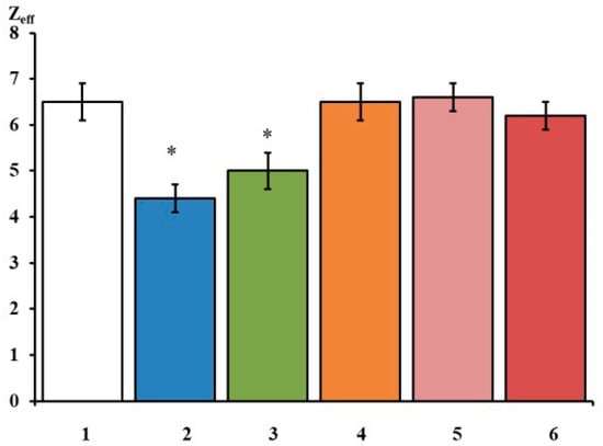 Standard statistical methods cannot be used in the framework of this approach because statistical averaging at an early stage of data processing completely hides the component that is the goal of our research. Therefore, to obtain the average Zeff value, it is first required to evaluate this parameter in every single experiment. Statistical averaging was carried out over the entire ensemble of investigated cells. In the framework of the Hodgkin–Huxley formalism, the effective charge transferred by the NaV1.8 channel activation gating system is a conservative parameter in control conditions. According to the model-independent estimate provided by the creators of the membrane ionic theory, the control Zeff value is equal to 6 electron charge units [], which correlates with the control Zeff value obtained herein for the NaV1.8 channel (Figure 3).
