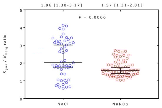 | Kgaa (×1000) | 6.9 [6.1–8.6] | 7.7 [6.7–9.4] | +11 | 0.0334 | 0.614 |