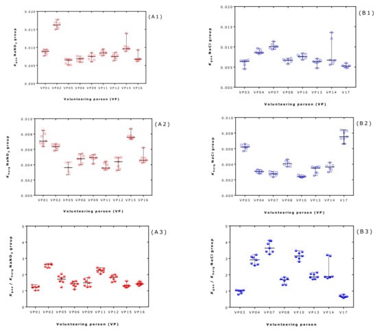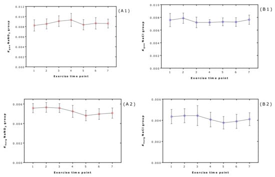 2.5. Effect of Supplementation and Exercise on the Equilibrium Constants in Each Volunteer and at Each Exercise Timepoint