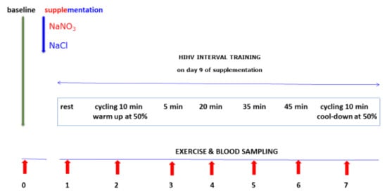 - Finkel, A.; Röhrich, M.A.; Maassen, N.; Lützow, M.; Blau, L.S.; Hanff, E.; Tsikas, D.; Maassen, M. Long-term effects of NO3− on the relationship between oxygen uptake and power after three weeks of supplemented HIHVT. J. Appl. Physiol. 2018, 125, 1997–2007. [Google Scholar] [CrossRef] [PubMed]