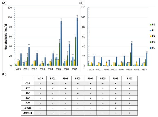 2.1. Establishing the Y. lipolytica as a Phospholipid-Producing Platform Relative to Different Carbon Sources