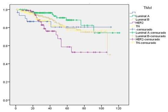 2.7. Kaplan–Meier Survival Curve for Mexican Women with Breast Cancer