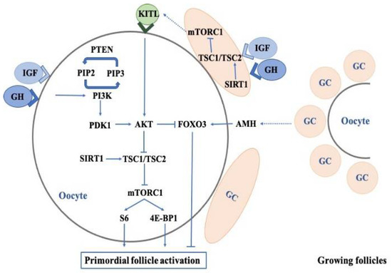 - Grosbois, J.; Demeestere, I. Dynamics of PI3K and Hippo signaling pathways during in vitro human follicle activation. Hum. Reprod. 2018, 33, 1705–1714. [Google Scholar] [CrossRef] [PubMed]