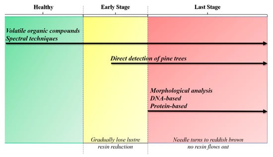 Li, M.; Li, H.; Ding, X.; Wang, L.; Wang, X.; Chen, F. The Detection of Pine Wilt Disease: A Literature Review. Int. J. Mol. Sci. 2022, 23, 10797. https://doi.org/10.3390/ijms231810797