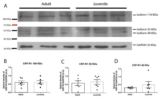 2.4. CRF-R1 Protein Levels in the NAc of Juvenile versus Adult Rats